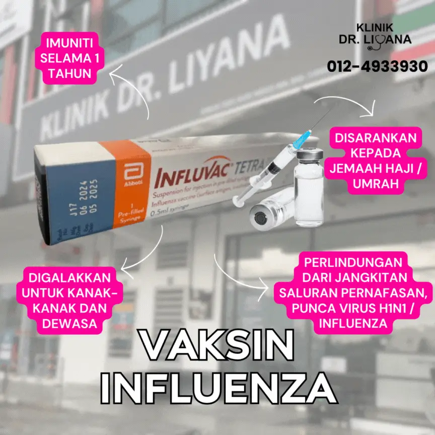 PEMERIKSAAN KESIHATAN BAKAL JEMAAH HAJI October 20, 2024 by admin with no comment Uncategorized PERKONGSIAN DARIPADA TAKLIMAT PEMERIKSAAN KESIHATAN BAKAL JEMAAH HAJI : Tiada lagi buku pemeriksaan Haji. Semua pemeriksaan kesihatan hanya dikemaskini melalui sistem sahaja. Hanya klinik kesihatan dan klinik swasta yang berdaftar sahaja yang boleh membuat pemeriksaan bakal jemaah haji. VAKSIN WAJIB :MENINGOCOCCALINFLUENZACOVID-19 (2024/2025)TAMBAHAN : PNEUMOCOCCAL Untuk Temu Janji Previous Post KAYAP (HERPES ZOSTER) Next Post SEBACEOUS CYST